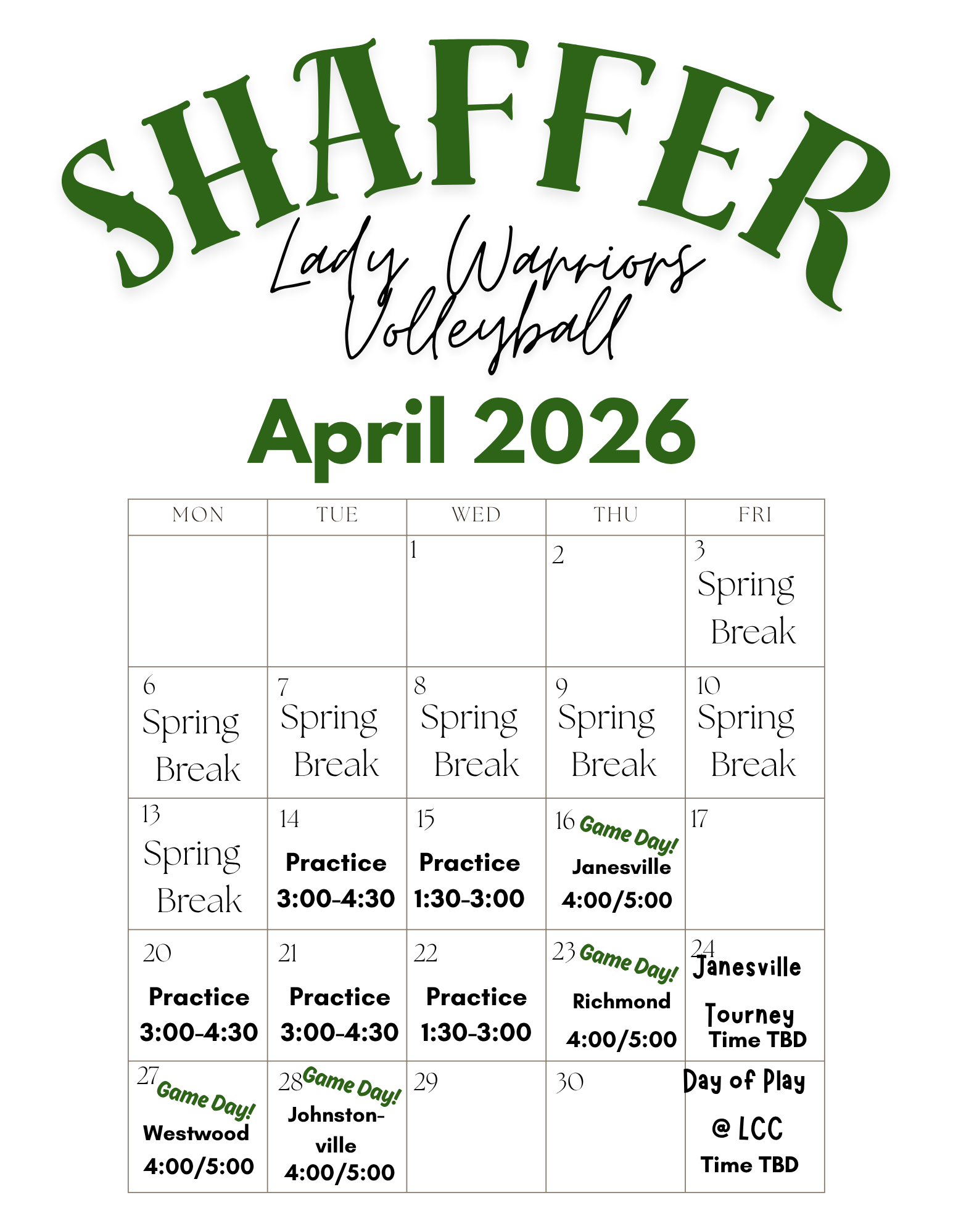2025-2026 School Calendar